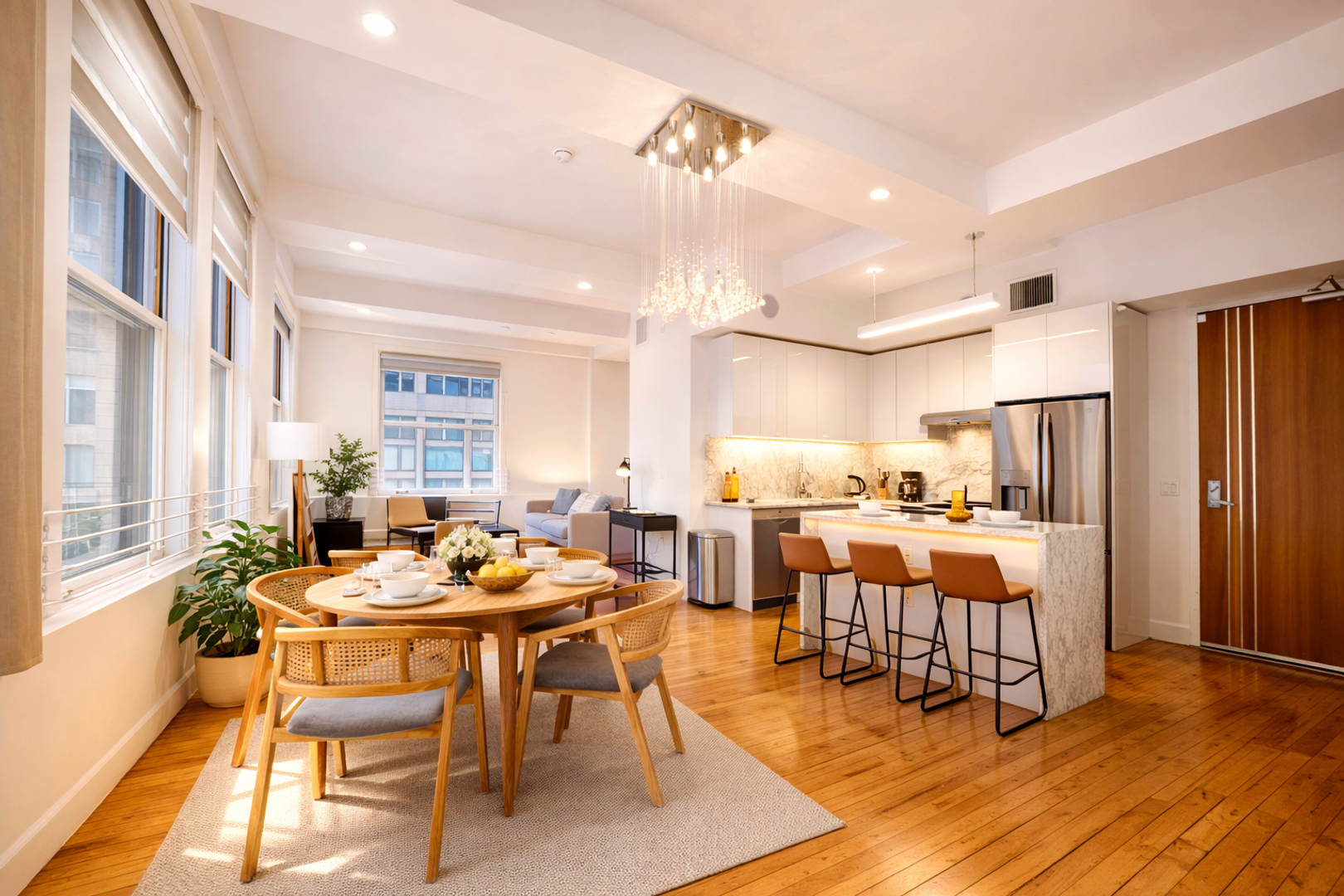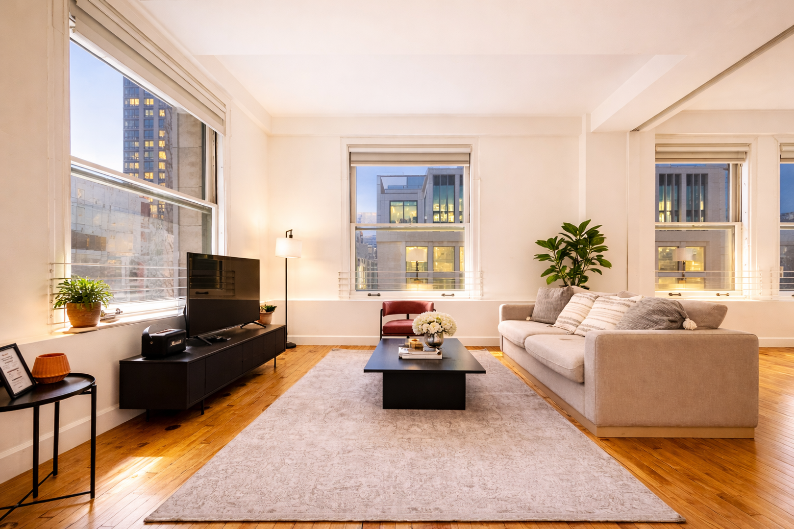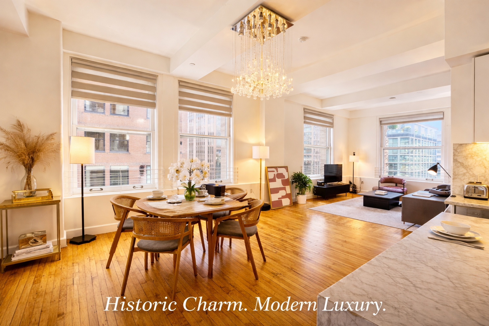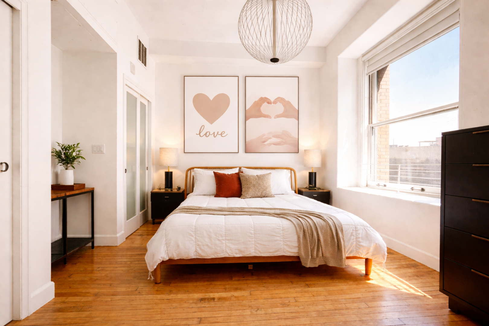 Experience our largest 2 bed, 2 bath dual master residence, designed for both privacy and elevated comfort. Featuring expansive loft-style layouts, soaring ceilings, and oversized windows, each home is filled with natural light and timeless character, complemented by beautifully restored hardwood floors.