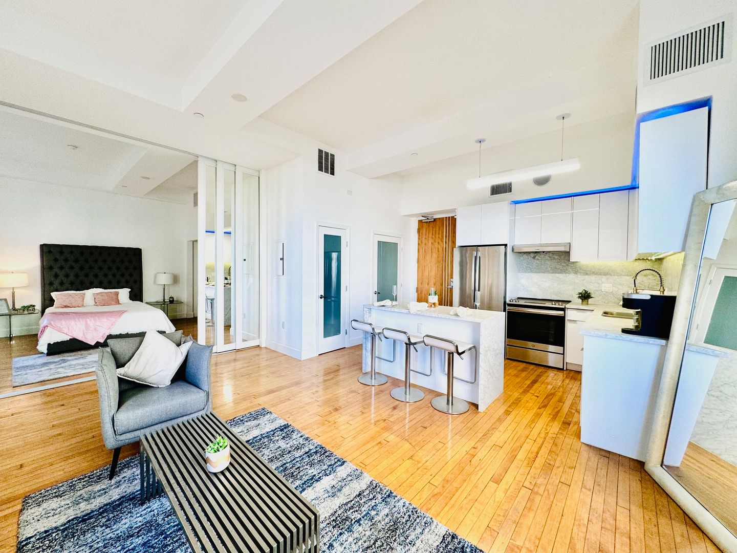 Welcome to the HW Hellman Building in the heart of Los Angeles, CA. This stunning 1 bedroom, 1 bathroom apartment boasts luxurious amenities such as hardwood floors, oversized windows flooding the space with natural light, in-unit washer/dryer, dishwasher, and high ceilings. Enjoy modern conveniences like Google Home and Bluetooth speakers throughout the unit. Step outside to the rooftop amenity deck where you can take a dip in the saltwater pool, work out in the gym, let your furry friend run free in the dog run, or relax in the lounges with fire pits. Experience upscale living at its finest at the HW Hellman Building.