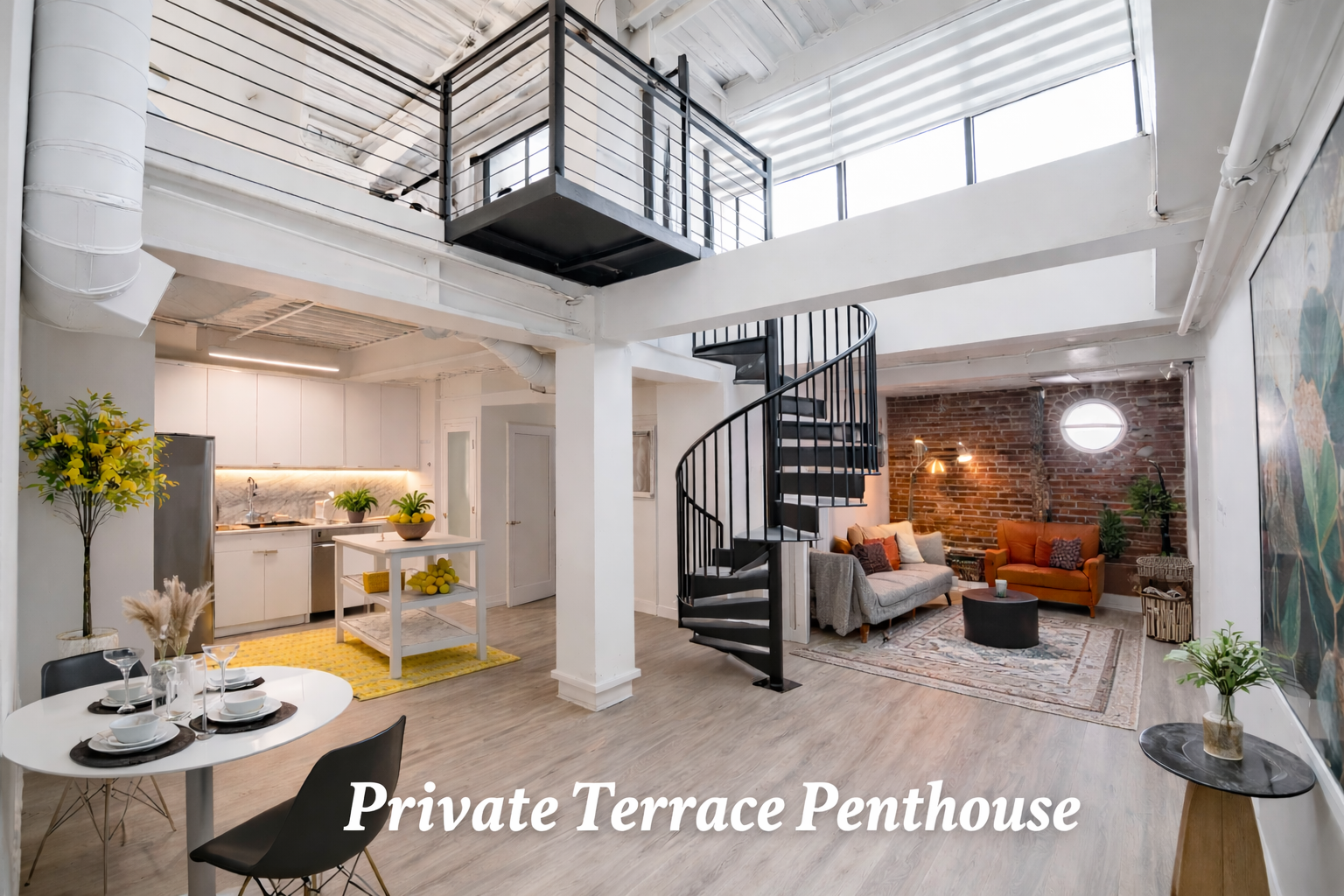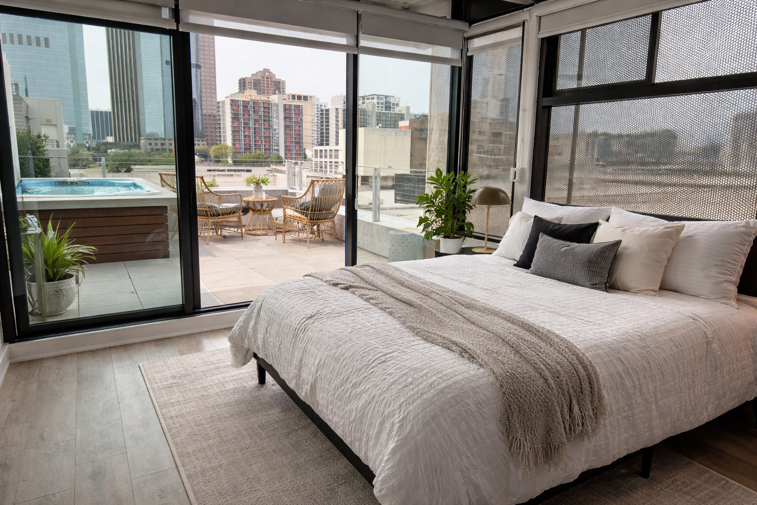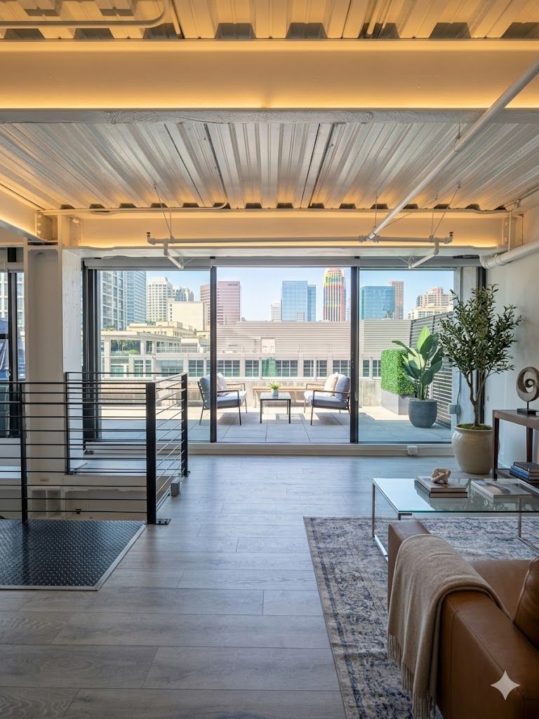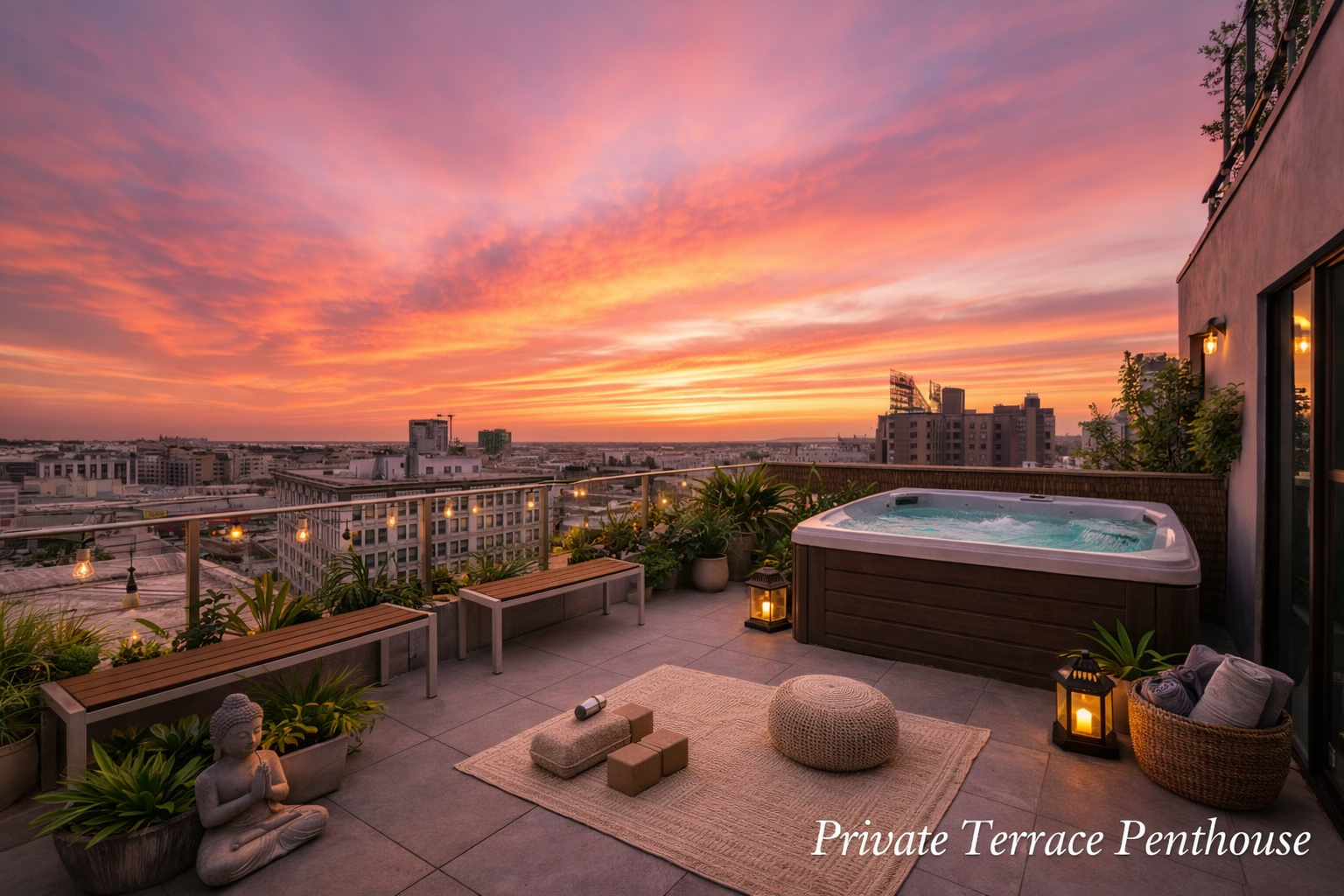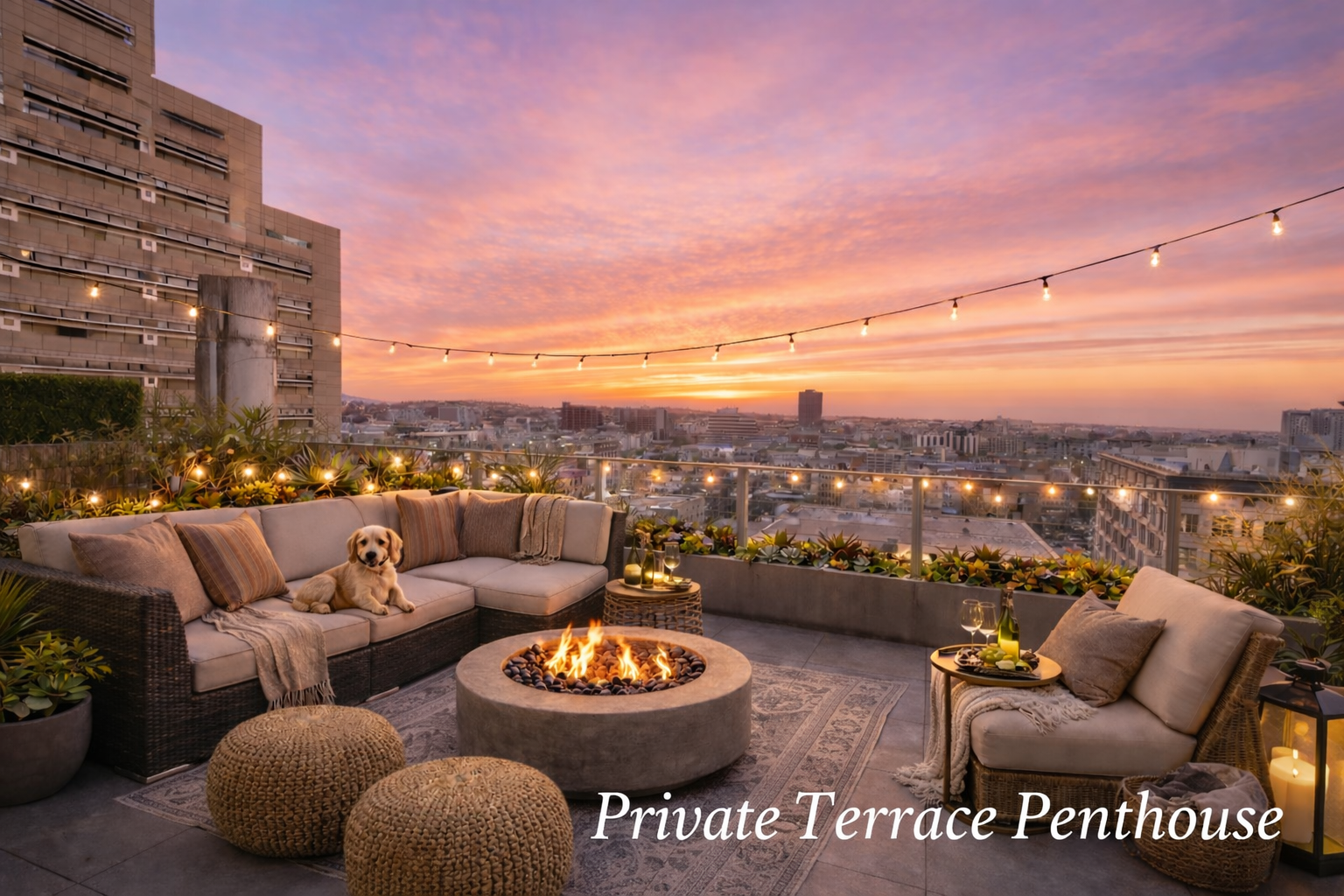 We put the best finishes into the penthouses. Each penthouse features: a second story, a large rooftop deck, a rooftop jacuzzi, and opulent views of the downtown Los Angeles skyline.